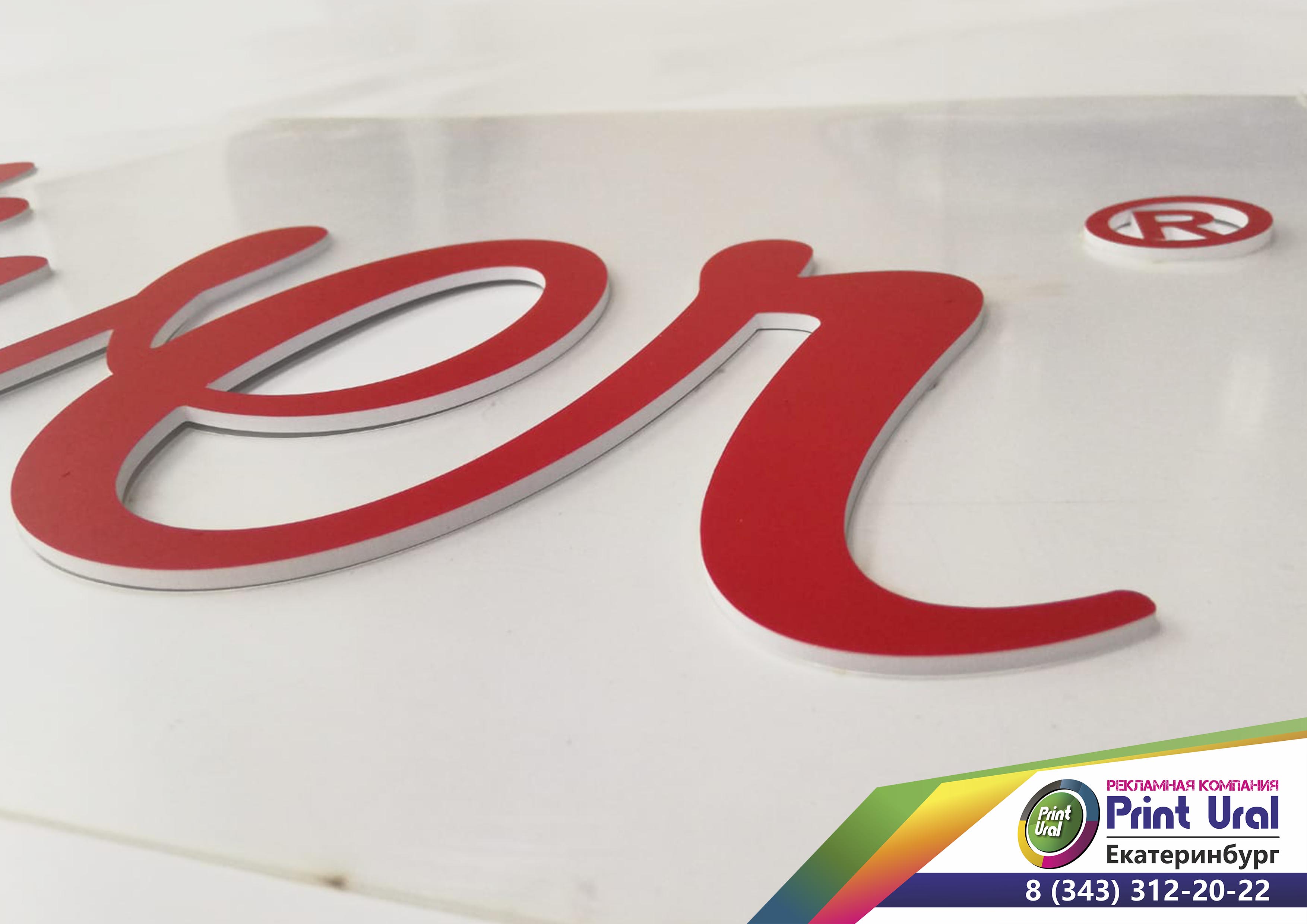Буквы выполнены из пвх с применением красного акрила. Выбор цветовой палитры не ограничен