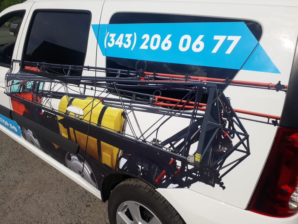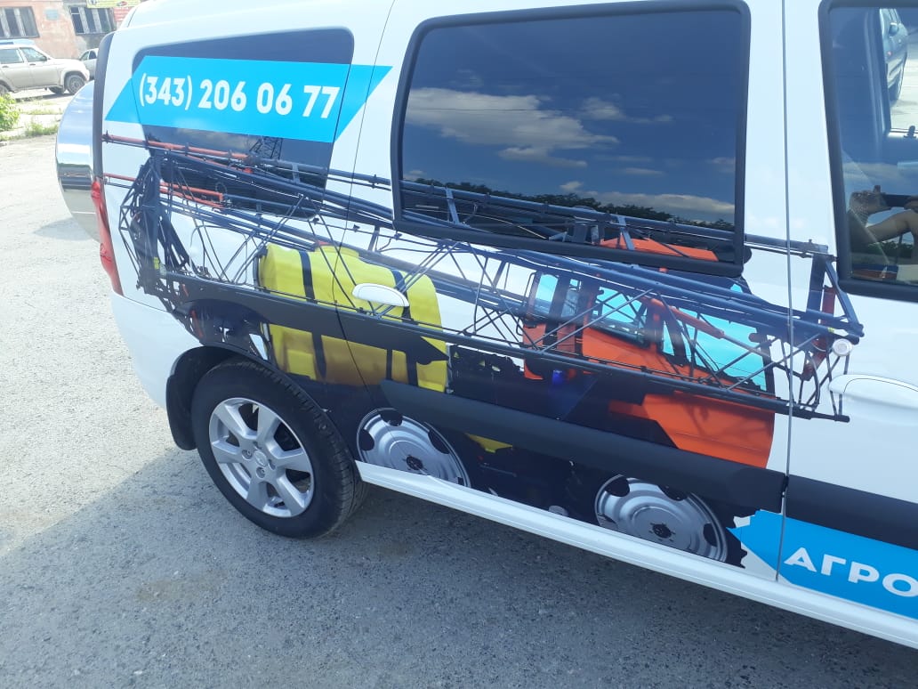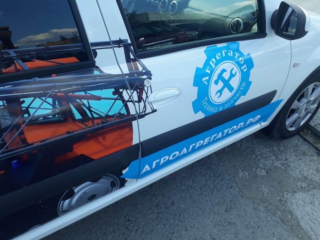 В стоимость брендирования данного автомобиля входило: создание макета, изготовление наклеек, мойка автомобиля и монтаж