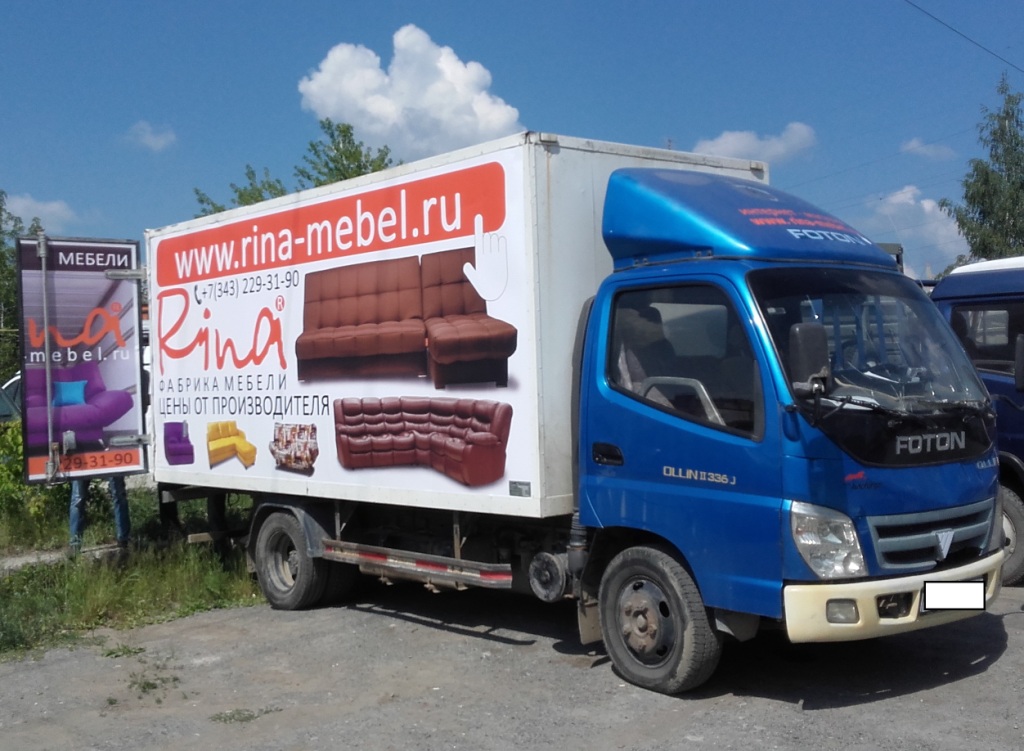 Наша компания оказала услуги под ключ по брендированию автомобиля FOTON для компании RINA мебель.