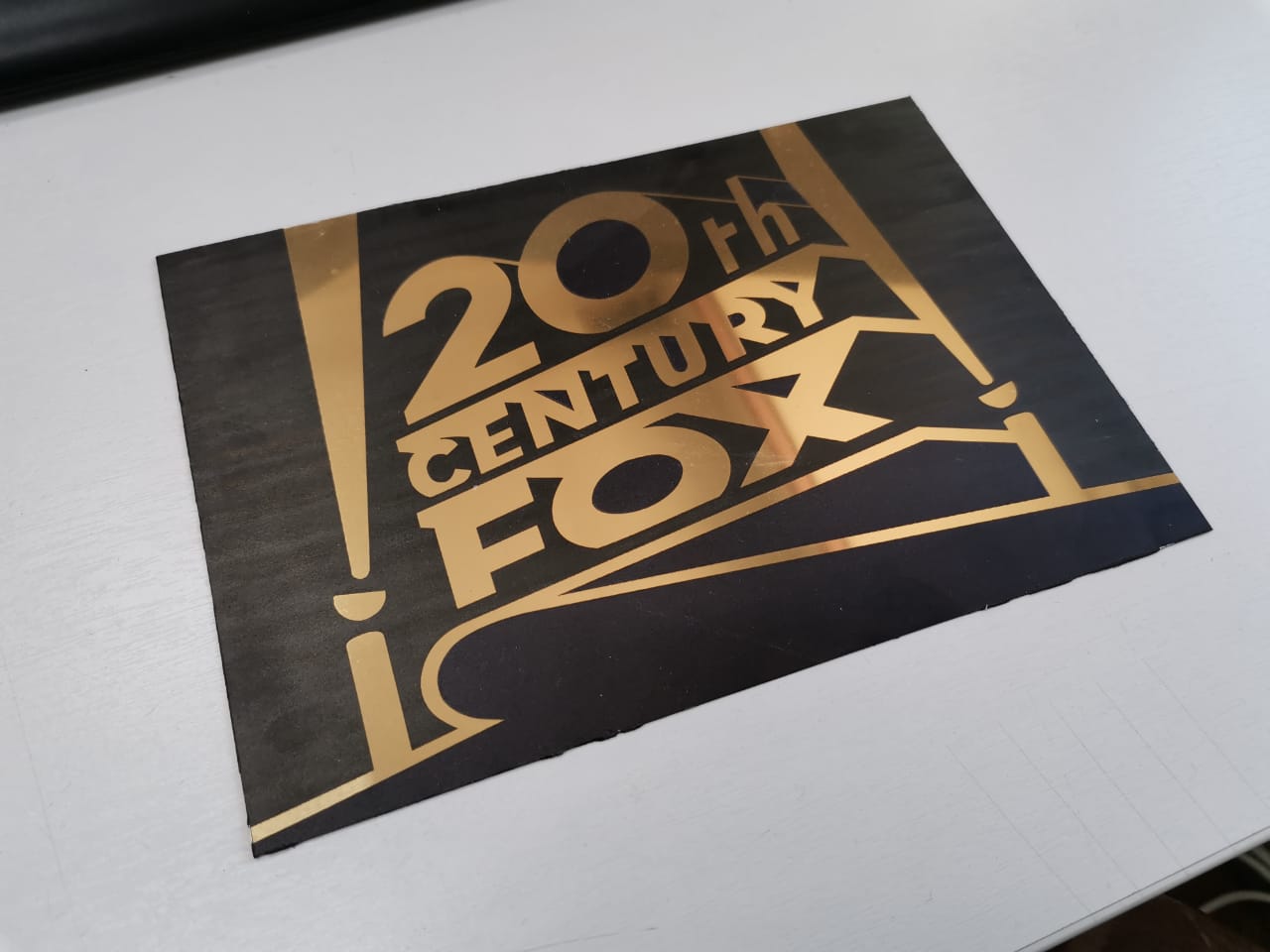 Табличка из металла с золотым зеркальным покрытием и УФ печатью