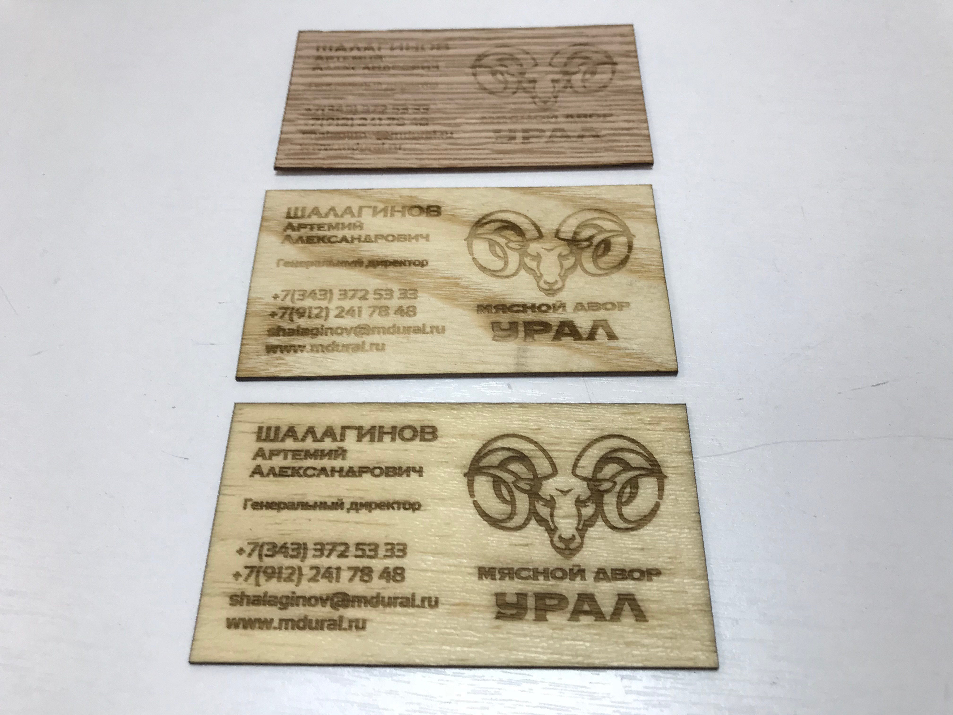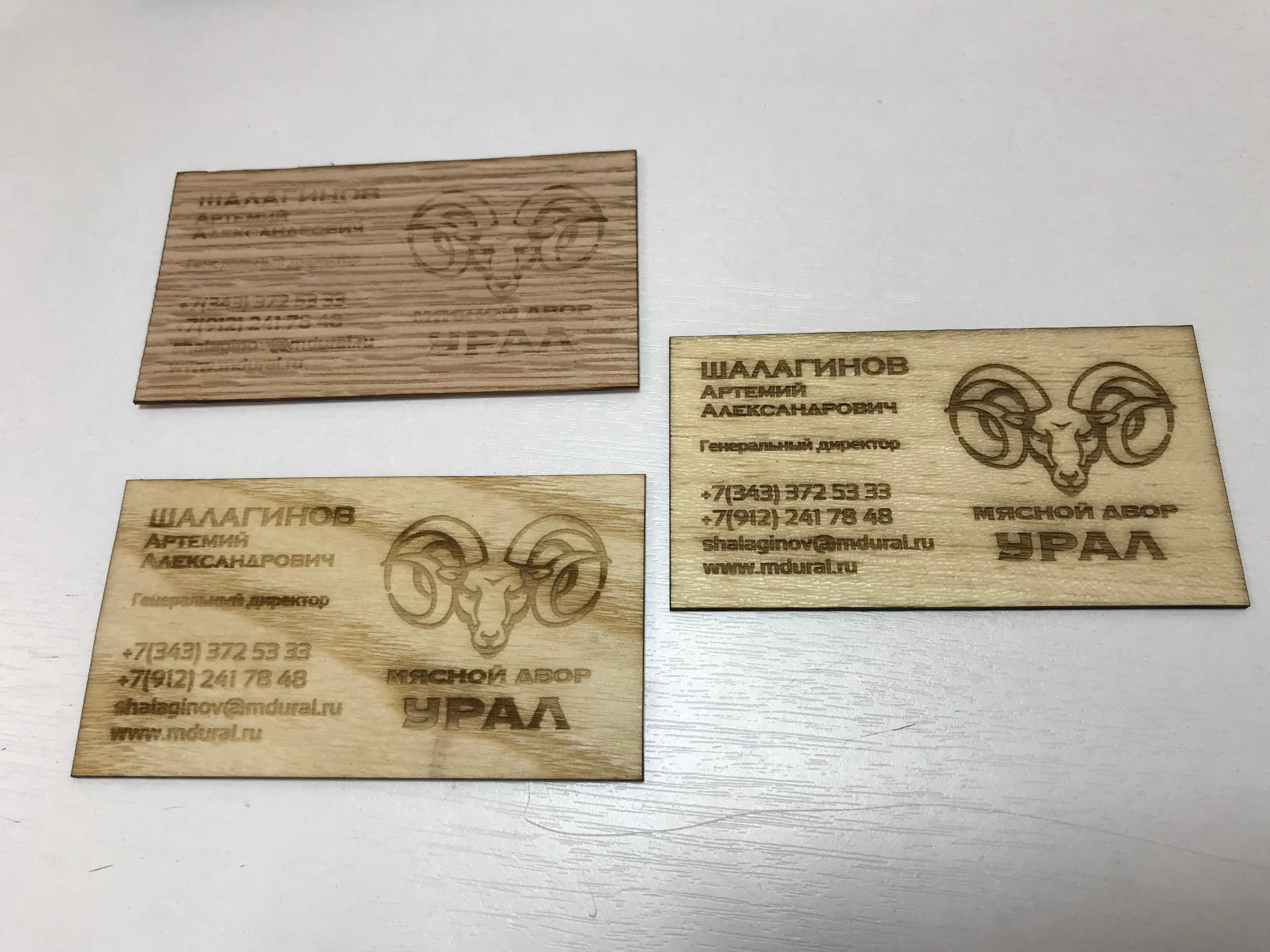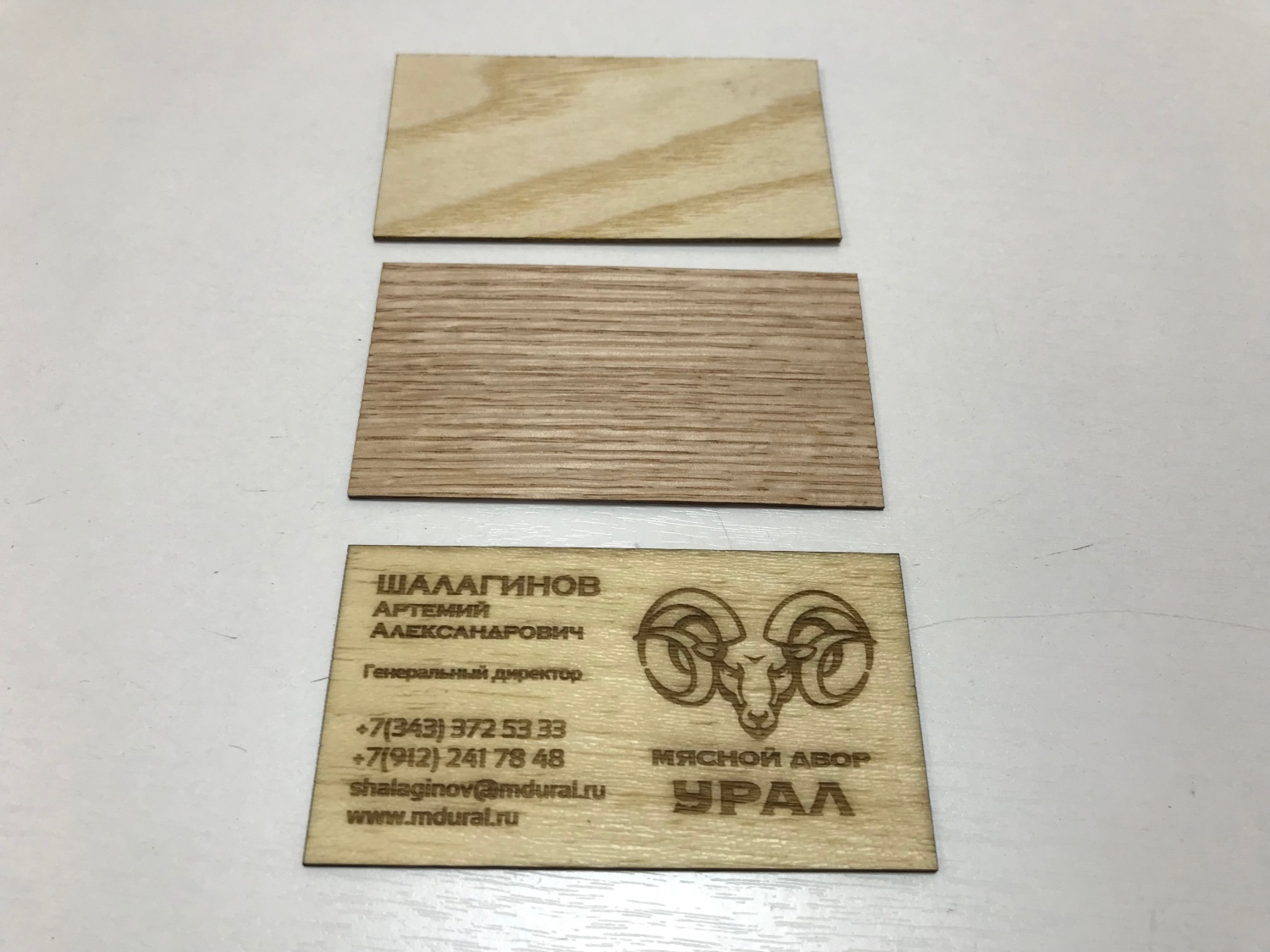 Изготовление визиток из шпона ценных пород древесины с нанесением гравировки, толщина 1,5мм.